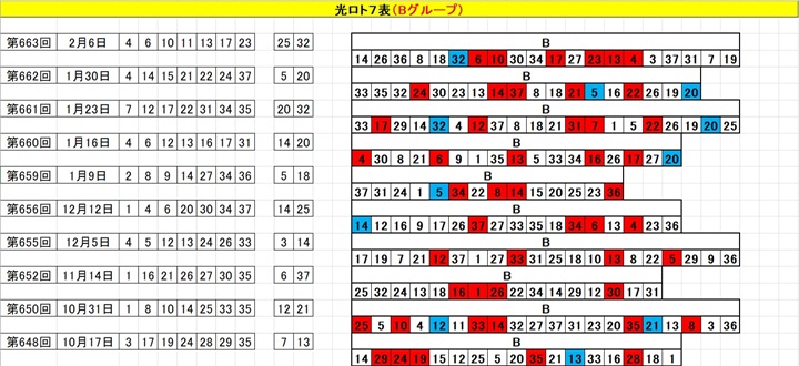 2026年2月6日までの直近の光ロト7表を載せます☆